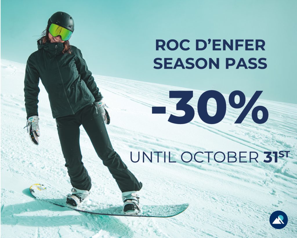 Roc D’enfer Skipass 1 to 7 days Roc D’Enfer – Child : 5 to 15 years included – Young : 16 to 25 years included (proof of status required) – Adult : 26 to 64 years included – Sénior : 65 to 74 years included (proof of status required)